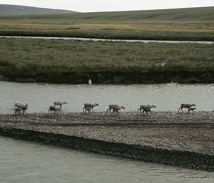 Caribou and Calves Crossing the Kokolik River |